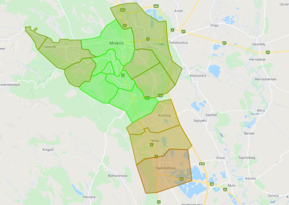 Miskolc, Mályi, Nyékládháza és Kistokaj